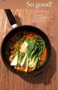 JY: I try to cook and host dinner on the weekends as that is how i destress. I recently came across this tomato curry. it’s super easy to make and kind of keto friendly too