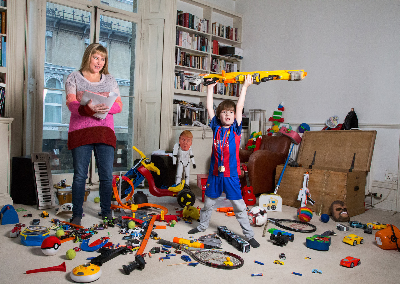 FF: Conversations with other working mums confirmed for me that we feel we are expected to raise our kids like we don’t have a job and do our job like we don’t have a family. So I decided to tell these two stories in one photograph with sometimes hilarious results. I like to use humour the make a very serious point. I have been overwhelmed by the positive response to the pictures.